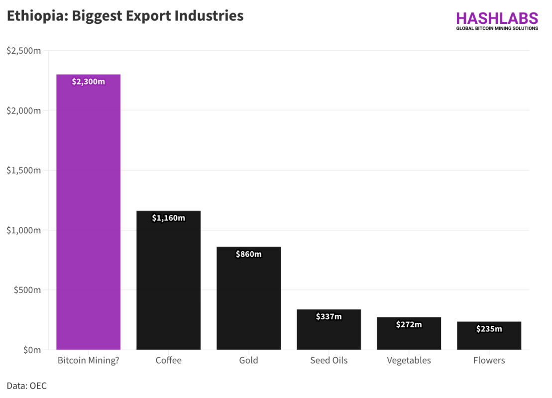Indeed, it’s prudent to adjust our expectations to account for real-world factors such as the Bitcoin halving and Ethiopia’s likely utilization of a portion of its electricity surplus for other purposes. A more realistic estimate of Ethiopia’s export income from Bitcoin mining would likely fall somewhere between $640 million and $3.9 billion, settling in the middle at around $2.3 billion.This figure still positions Bitcoin mining as the largest export industry in Ethiopia, representing a significant economic opportunity for the nation.
