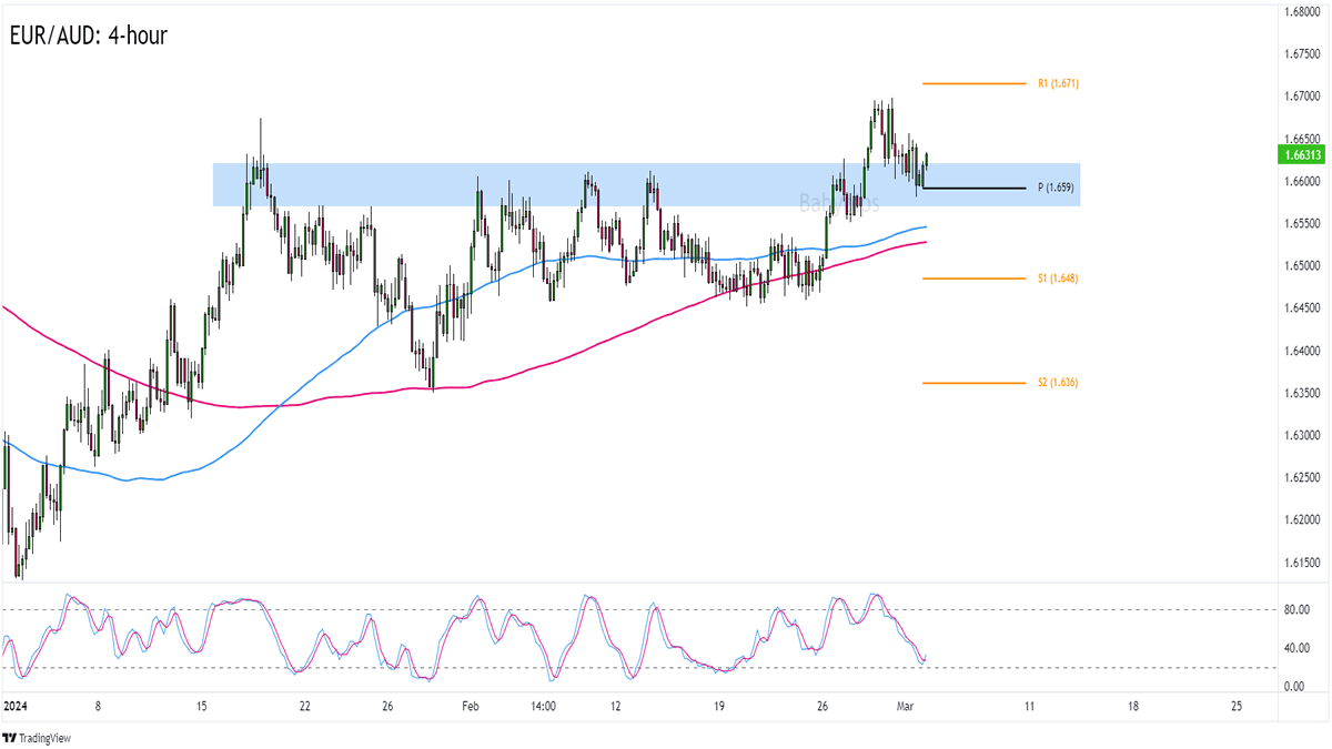If your research points you to the euro gaining traction ahead of and after the European Central Bank (ECB)’s policy decision, then you can take a closer look at EUR/AUD possibly finding support from the 1.6600 Pivot Point area.