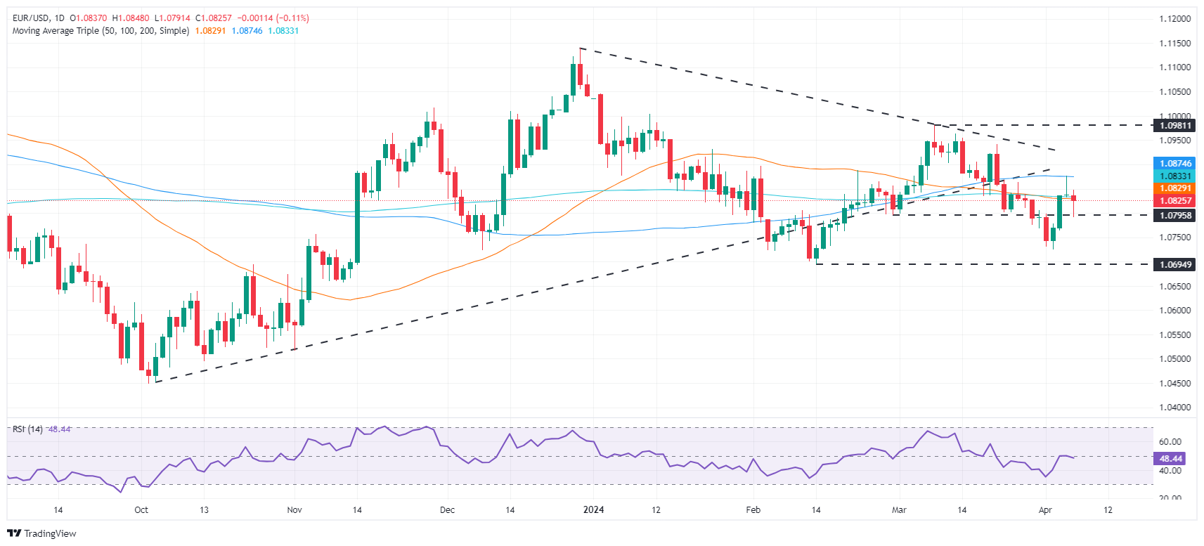 The Euro registers minimal losses of 0.13% following the release of a stronger-than-expected jobs report from the United States (US) that boosted the Greenback, sending the EUR/USD lower. At the time of writing, the pair trades at 1.0822 after hitting a daily high of 1.0847.