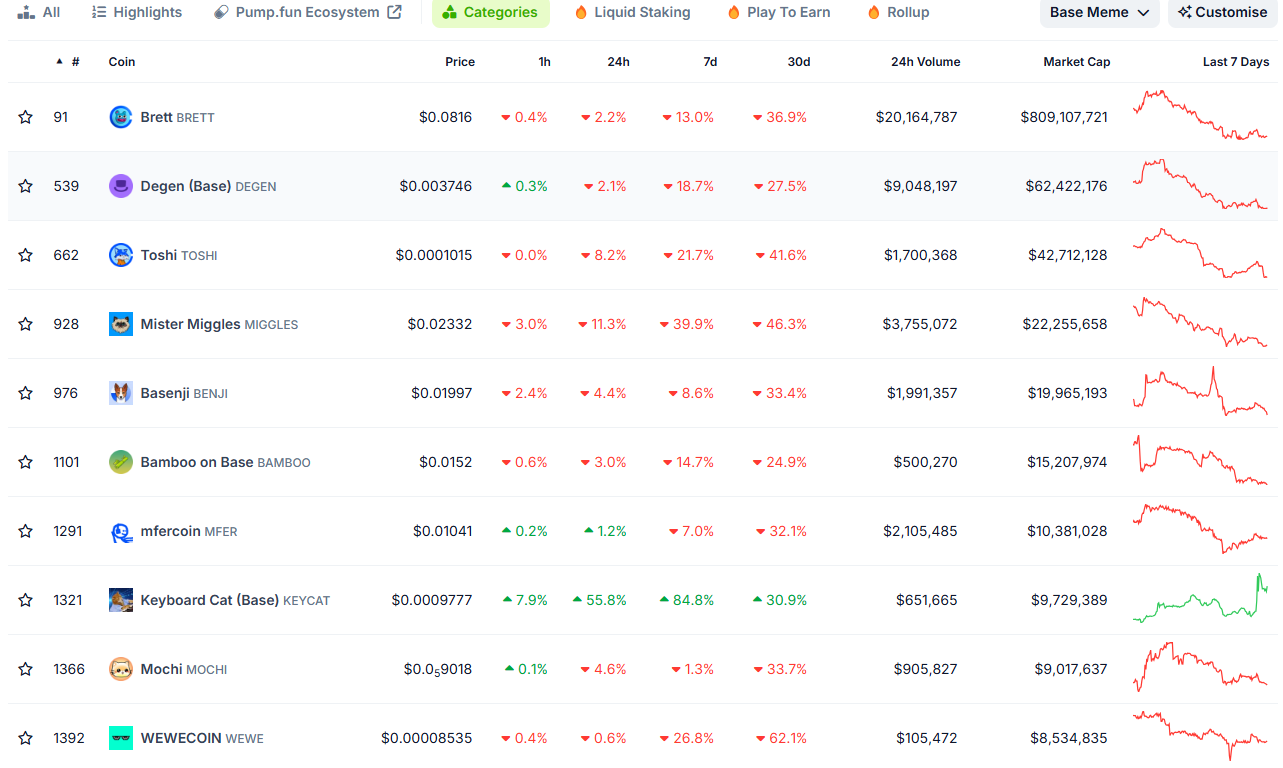 With a market cap of $1.1 billion, the Ethereum L2 meme coin ecosystem is dominated by a single token: Brett ($BRETT).
