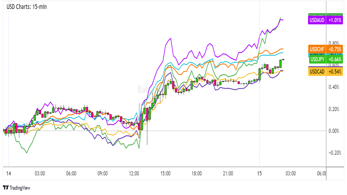 Overlay of USD vs. Major Currencies Chart by TradingView