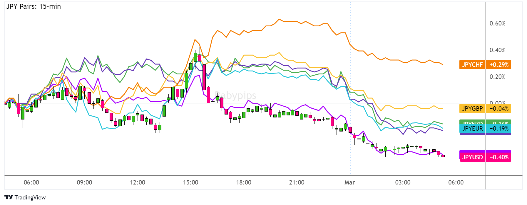 Overlay of JPY vs. Major Currencies Chart by TradingView