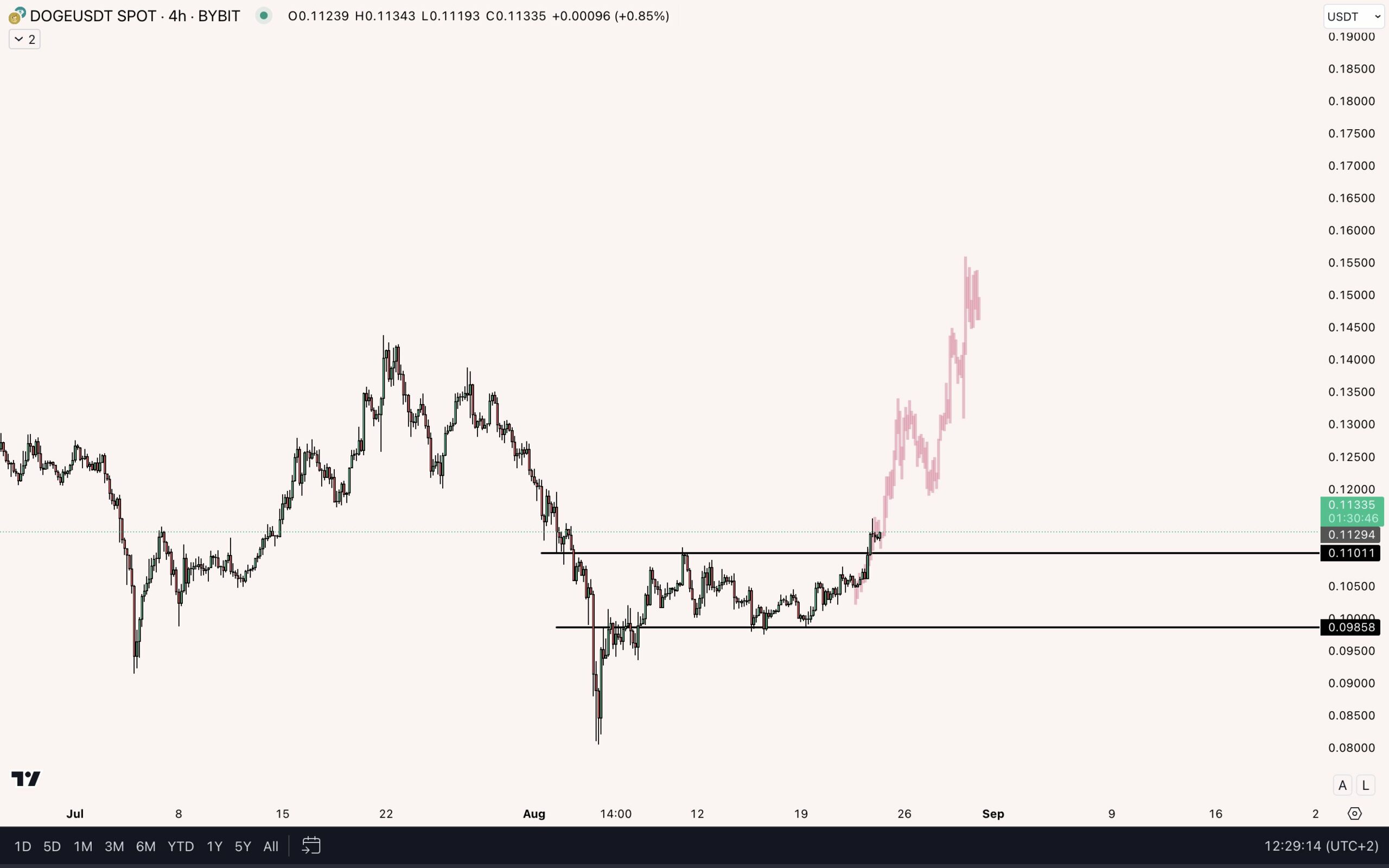 On the weekly chart, DOGE also broke out of a range and rejected a retest level consistent with a parallel channel that has been respected for the past four years.