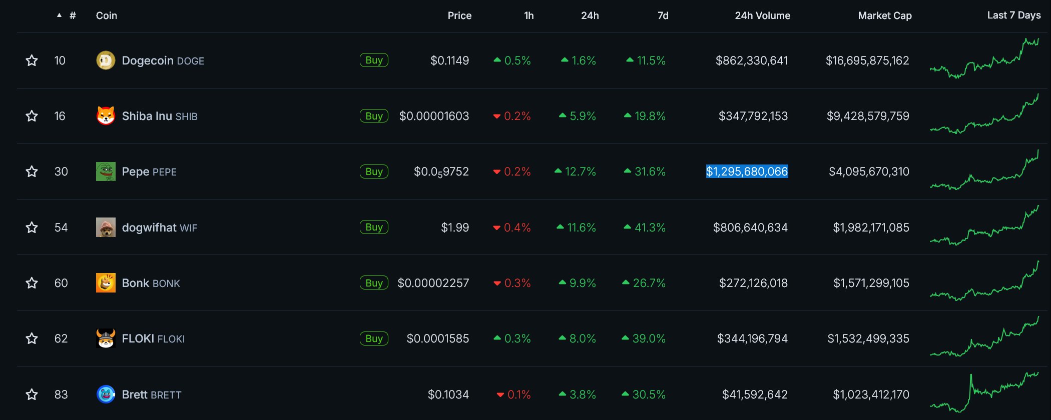 baby [PEPE] Leading the way, achieving higher trading volume than Shiba Inu [SHIB] And Dogecoin [DOGE] total.