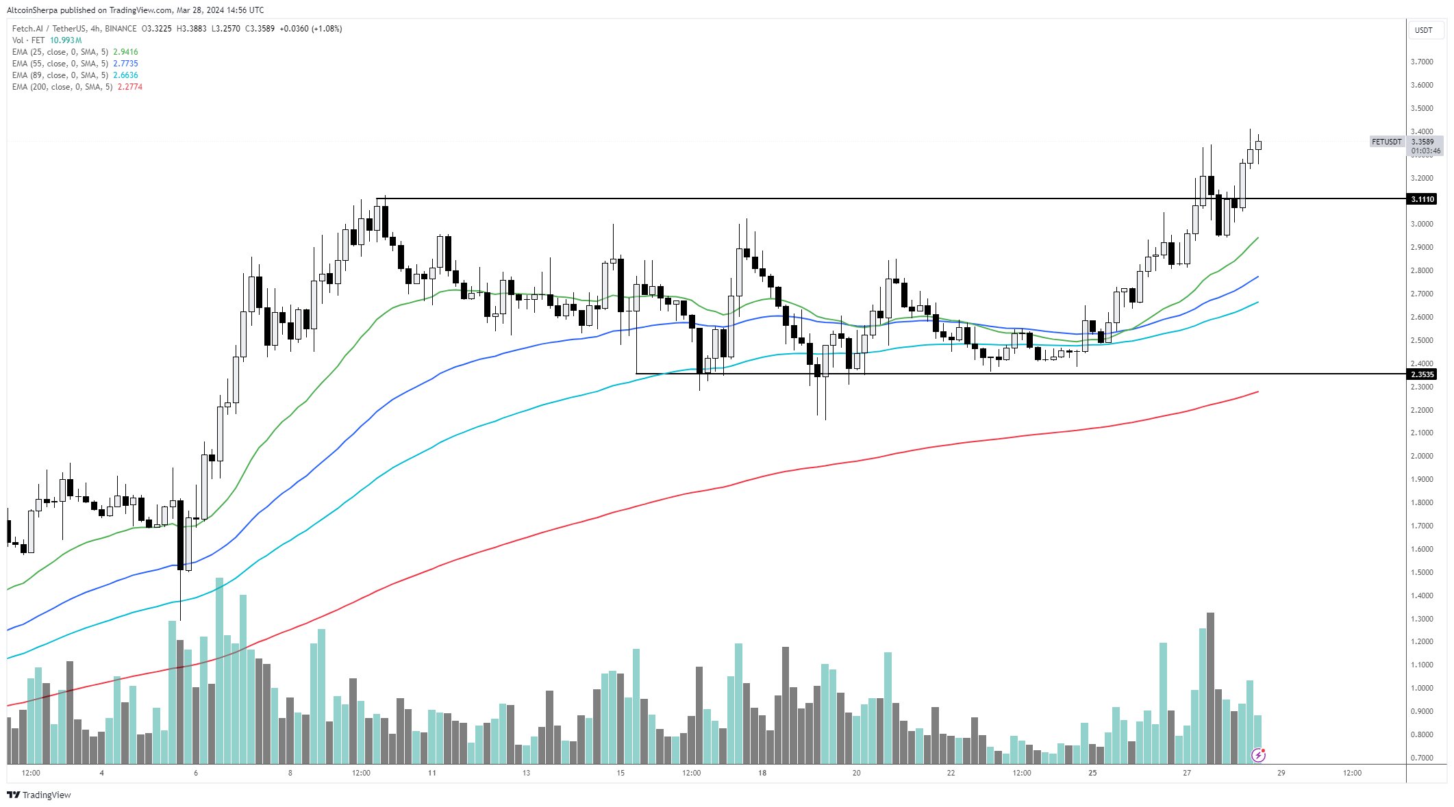 FET is trading at $3.07 at time of writing.