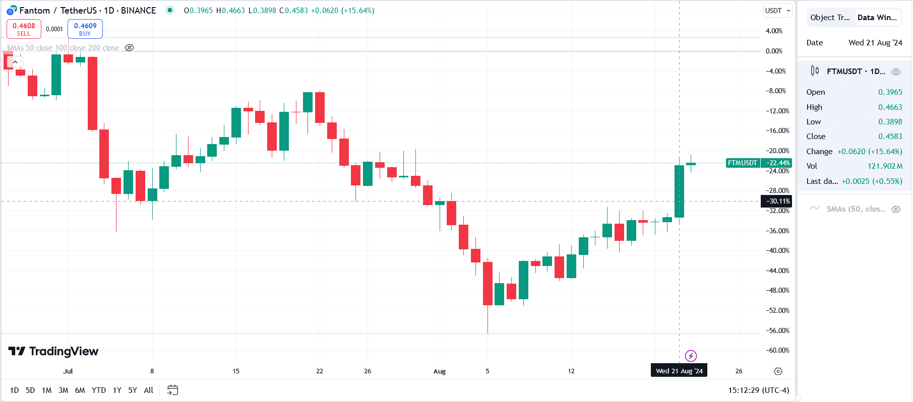 According to AMBCrypto’s TradingView, FTM printed a 15.64% daily green candle on August 21 and was on track to complete a small green candle.