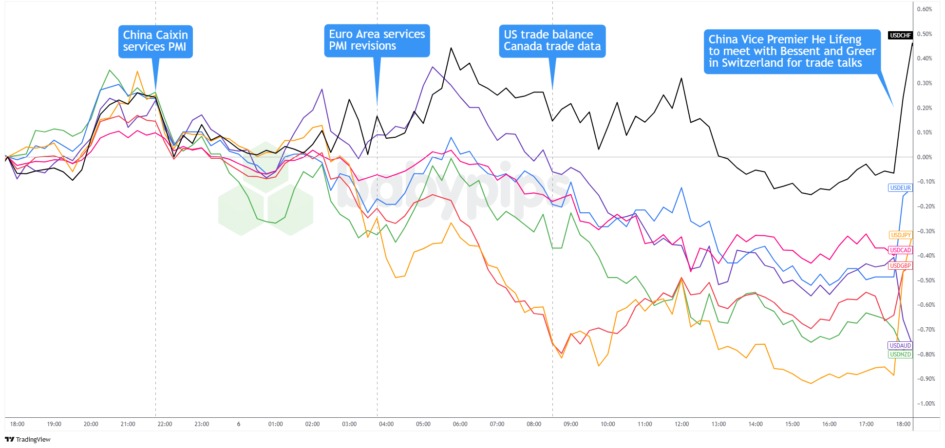The most dramatic step came near the end of the trading day when the news broke out that the Chinese Deputy Prime Minister, where Lifeng met with US officials in Switzerland. This declaration raised a sharp rise in the dollar, reflecting sudden optimism that commercial tensions may reduce and erase a lot of losses today within minutes.