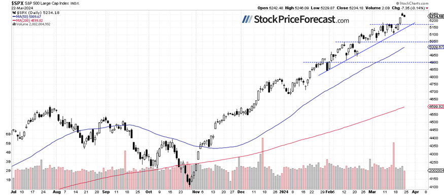 In my Stock Price Forecast for March, I noted “So far, stock prices have been trending upwards in the medium to long term, reaching new record highs. The prudent advice one could give right now is to remain bullish or stay on the sidelines if one believes stocks are becoming overvalued and may need a correction. It’s likely that the S&P 500 will continue its bull run this month. However, we may encounter a correction or increased volatility at some point as investors start to take profits off the table.”